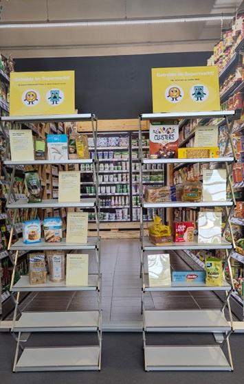 In einer Art Supermarktregalwand mit verschiedenen (Vollkorn-)Getreideprodukten wird über diverse verbraucherrelevante Themen aufgeklärt. Hierbei geht es zum Beispiel um die Bewerbung von ballaststoffreichen Lebensmitteln, regionale Siegel auf Getreideprodukten oder zuckerhaltige Vollkornlebensmittel. Zudem soll über die im Supermarkt erhältlichen Getreidesorten (bspw.: Grünkern, Dinkel, Graupen, Hafer(-kleie)) informiert werden, die als ballaststoffreiche Mahlzeitenergänzung dienen können.