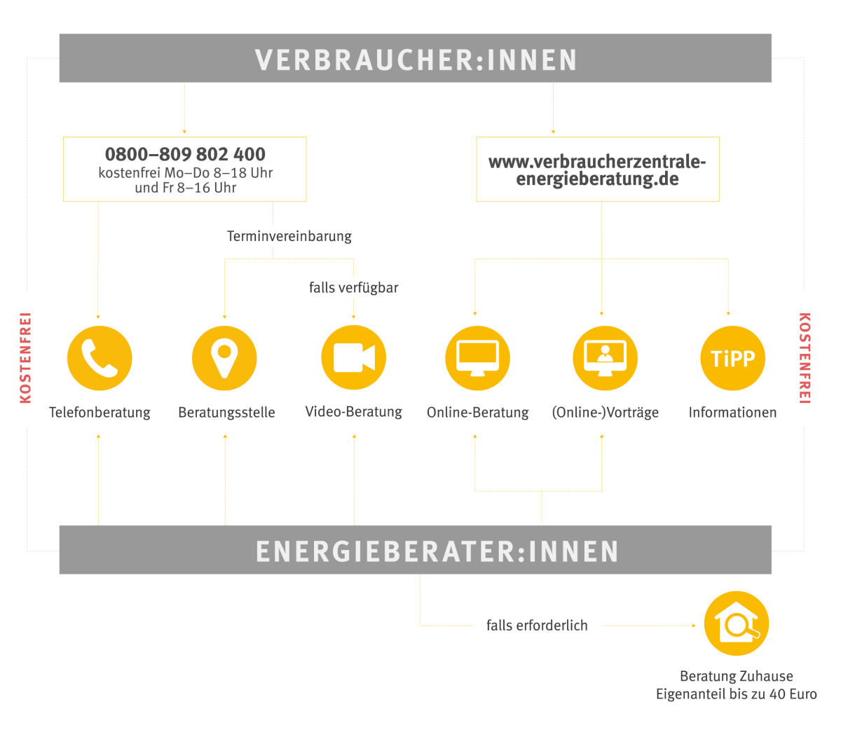 Bundesweit beraten mehr als 800 Energieberater und Energieberaterinnen im Auftrag der Verbraucherzentrale zu den Themen Energiesparen, Wärmedämmung, moderne Heiztechnik und erneuerbare Energien. Hohe fachliche Kompetenz und strikte Unabhängigkeit zeichnen die Energieberatung der Verbraucherzentrale aus.