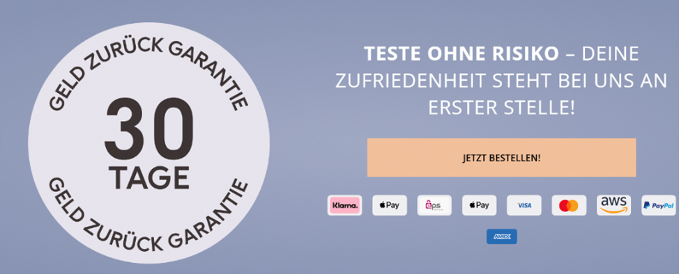 - Die Beklagte wird verurteilt, es zu unterlassen, Verbrauchern im Internet den Kauf von Nahrungsergänzungsmitteln anzubieten, und in diesem Zusammenhang mit einer „30 TAGE GELD ZURÜCK GARANTIE“ zu werben, wie geschehen auf der Website der Beklagten gemäß Screenshots nach Anlage K 1, wenn ausweislich der AGB der Beklagten die „30-Tage-Geld-zurück-Garantie“ lediglich der Möglichkeit einer Beschwerde dienen und keinen automatischen Anspruch auf Rückerstattung des Kaufpreises gewähren soll (Anlage K 2, Seite 2).